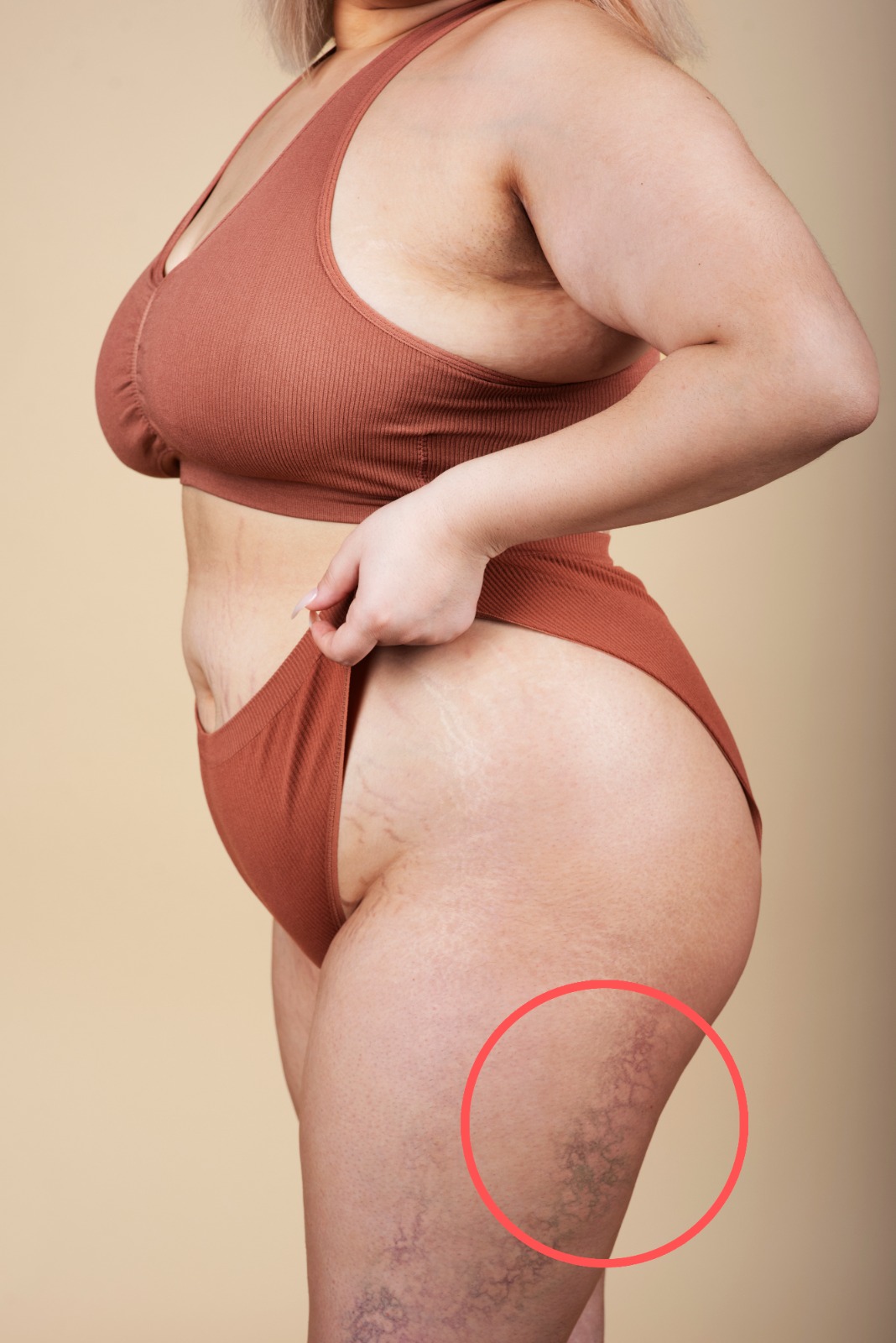 Spider veins are not true veins but rather are damaged capillaries, venules, and arterioles, which are smaller types of blood vessels. These tiny vessels connect to the larger ones within your circulatory system. The label “spider veins” is commonly used because it’s straightforward and memorable.